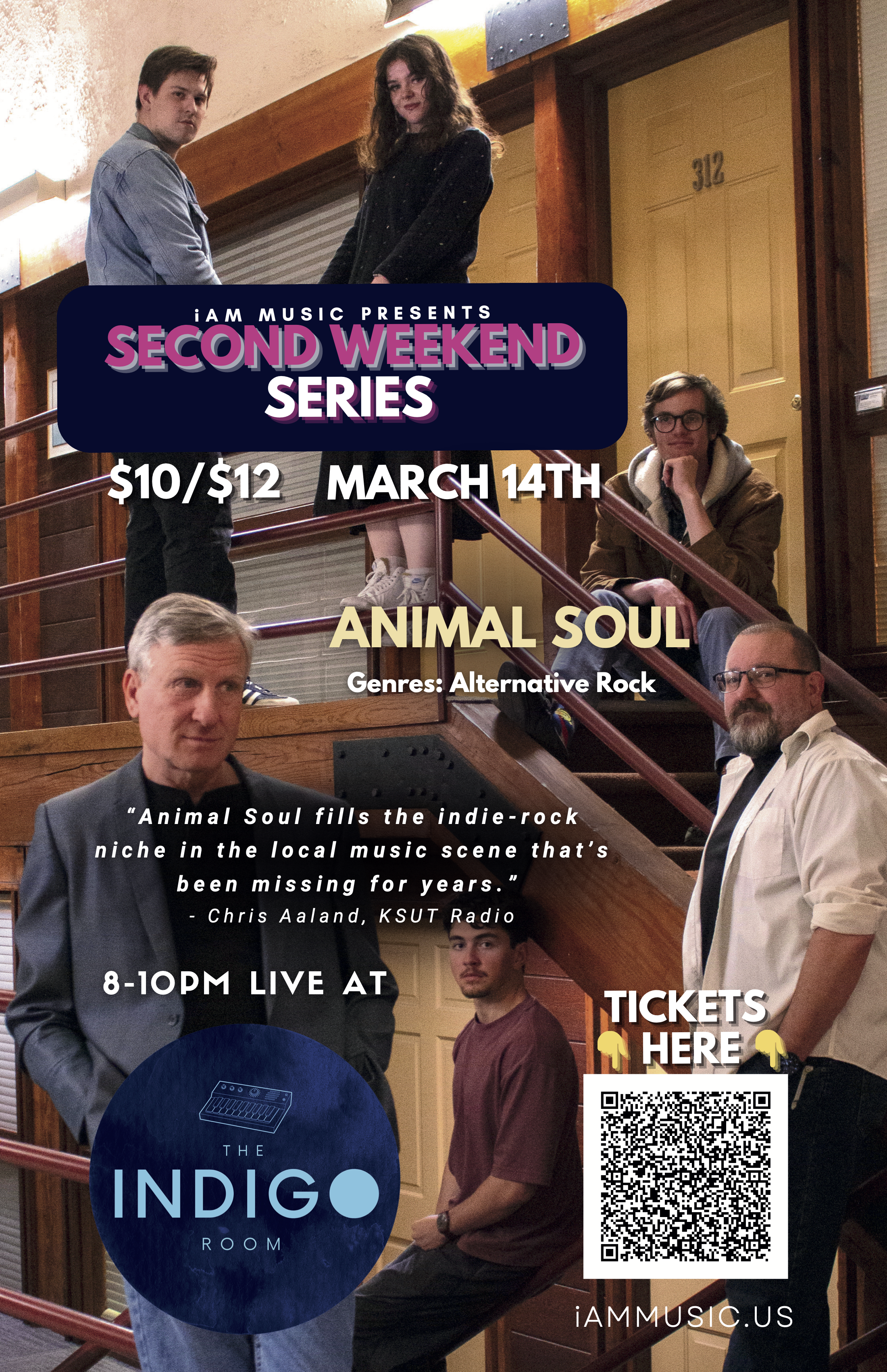Animal Soul is a Durango, CO-based alternative rock band whose original music blends the grit and inspiration of classic rock with the charm and sophistication of today’s indie pop. The sound is genre-fluid, weaving hints of americana, glam, power pop, and soul into a sonic fabric all its own. Live, Animal Soul is innovative, eccentric, and seriously entertaining, serving up a blistering potpourri of energetic sonic inventions.